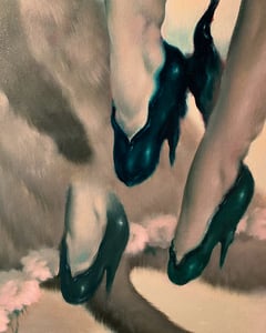 "Our Chasm": oil painting on canvas, art size: 38 x 56 inches (stretched canvas size), 2020. This monochromatic canvas, one of my few available large paintings, comes with a certificate of authenticity and a signed Frog Wife risograph comic book. This piece hung in the August 2020 Summer Show at Gallery Poulsen in Copenhagen.